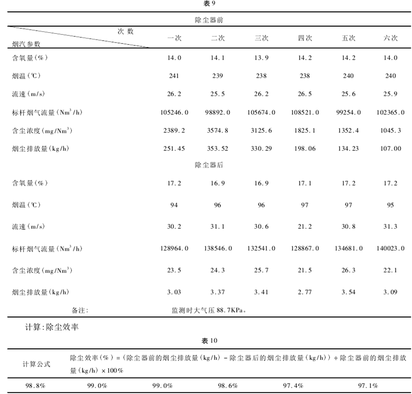 布袋除塵器的六組排放量,可以看出它們的排放量基本相同,誤差很小,所以這種方法又得到了實(shí)際監(jiān)測(cè)的肯定,這為我們?nèi)蘸蟊O(jiān)測(cè)正壓除塵器提供了一種實(shí)用正確的監(jiān)測(cè)方法。