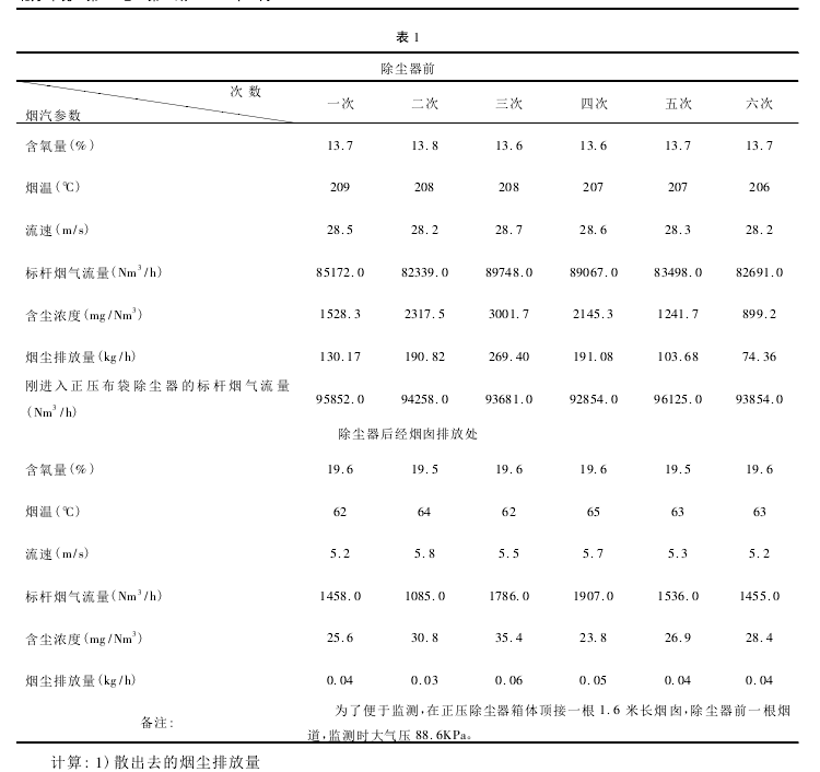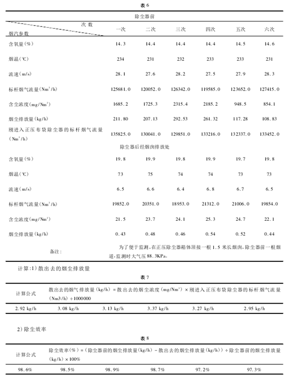 通過(guò)比較正壓布袋除塵器和負(fù)壓布袋除塵器的六組排放量,可以得出結(jié)論: 正壓布袋除塵器監(jiān)測(cè)和計(jì)算的結(jié)果與負(fù)壓布袋除塵器準(zhǔn)確監(jiān)測(cè)結(jié)果基本相同,誤差很小,所以這種方法可行。