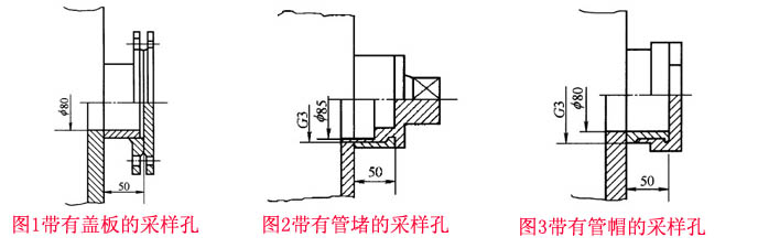 在選定的測(cè)定位置上開(kāi)設(shè)采樣孔,采樣孔內(nèi)徑應(yīng)不小于 80mm ,采樣孔管長(zhǎng)應(yīng)不大于 50mm ;不使用時(shí)應(yīng)用蓋板、管堵或管帽封閉(見(jiàn)圖 1 至 3 )。當(dāng)采樣孔僅用于采集氣態(tài)污染物時(shí),其內(nèi)徑應(yīng)不小于 40mm 。