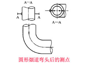 除塵系統(tǒng)將煙道分成適當數量的等面積同心環(huán),各測點選在各環(huán)等面積中心線與呈垂直相交的兩條直徑線的交點上,其中一條直徑線應在預期濃度變化_的平面內,如當測點在彎頭后,該直徑線應位于彎頭所在的平面 A-A 內(見圖)。
