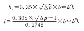 ④ 裝置在吸塵縫后的擴散器的出口截面的寬度b1,及其長度ι,可按下式確定