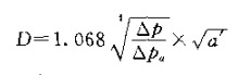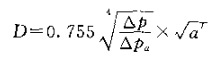 ⑦旋風直徑D。抽吸旋風子直徑可由下列各式求得: