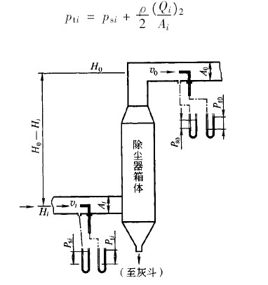 上式中,右邊_項(xiàng)是除塵器的出、入口靜壓差;_項(xiàng)是出、入口測定截面積有差別時(shí)的動(dòng)壓校正。如果假定出、入口通風(fēng)道的截面積相等,而且沒有高低差,那么,_項(xiàng)、第三項(xiàng)_不存在以上所說的壓力損失也包括除塵器前后通風(fēng)管的壓力損失,除塵器自身的壓力損失要扣除通風(fēng)管的壓力損失.